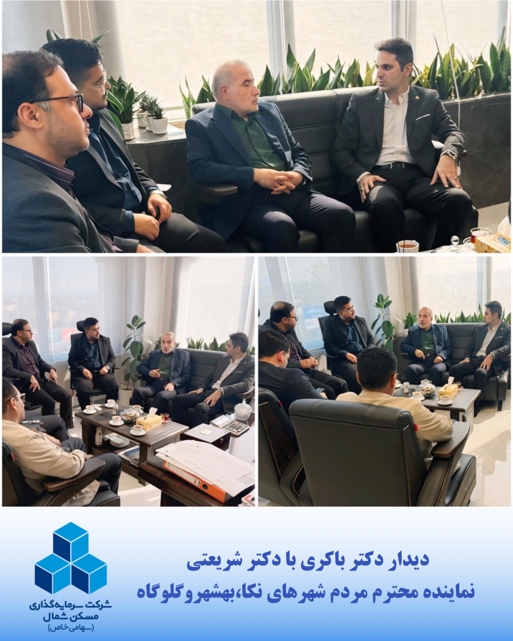 در راستای توسعه همکاریهای سازنده میان بخشهای اجرایی و قانونگذاری و با هدف پیشبرد برنامههای عمرانی و سرمایهگذاری در شمال کشور، جلسهای با حضور دکتر محمد باکری، مدیرعامل شرکت سرمایهگذاری مسکن شمال، و دکتر غلامرضا شریعتی، نماینده محترم مردم شهرهای نکا، بهشهر و گلوگاه در مجلس شورای اسلامی و عضو کمیسیون عمران مجلس، در دفتر شرکت سرمایهگذاری مسکن شمال برگزار گردید.